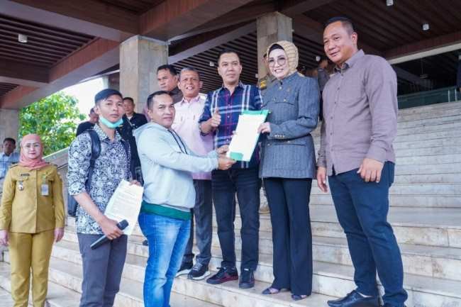 Journalinti.id – Ketua DPRD Provinsi Sumatera Selatan, Hj. R.A. Anita Noeringhati, SH., MH., menerima aksi demo yang digelar oleh Ikatan Solidaritas Warga Gandus di halaman Kantor DPRD Provinsi Sumatera Selatan, Senin (28/8/2023).