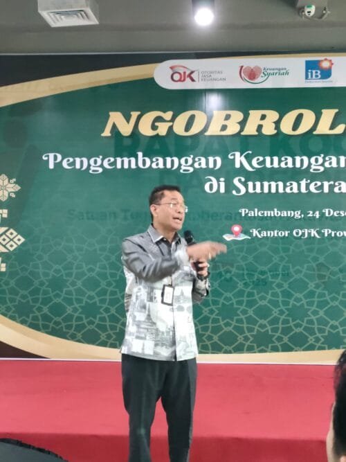 Journalinti – Otoritas Jasa Keuangan (OJK) Provinsi Sumatera Selatan (Sumsel) menyayangkan laju perkembangan keuangan syariah di Bumi Sriwijaya yang masih terhambat tantangan struktural. Meski didukung basis massa potensial besar, sektor ini belum optimal karena rendahnya literasi masyarakat dan lemahnya keterhubungan langsung (linkage) dengan sektor riil, khususnya Usaha Mikro, Kecil, dan Menengah (UMKM).