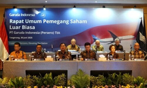 Journalinti | PT Garuda Indonesia (Persero) Tbk. (GIAA) telah melakukan perubahan pengurus pada jajaran direksi dan komisaris. Hel tersebut telah disepakati melalui Rapat Umum Pemegang Saham Luar Biasa (RUPSLB) yang berlangsung sejak sore hingga malam, Senin (30/6/2025).